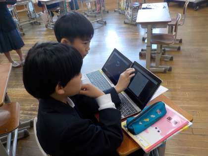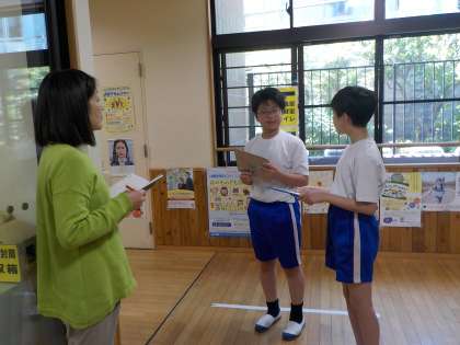 国語科「聞いて、考えを深めよう」の単元で、学校に関わっている大人にインタビューをする「話す・聞く」の学習をしています。質問内容を決めて、今日はインタビューの練習をしました。学校のよいところを先生方に聞くことで、新たな発見をしてほしいと思います。
