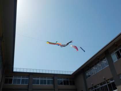 今日の昼休みは雲一つない青空が広がっていました。中庭には鯉が気持ちよさそうに泳ぎ、グラウンドではサッカーを楽しむ6年生の姿やシロツメクサでリースをつくる子どもたちの姿が見られました。春を存分に楽しみました。