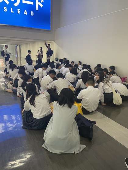 荷物を受け取った後、解団式をして、バスに乗る予定です。