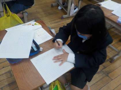話し手が話していることをかぎかっこを使って書いてみたり、「、」や「。」に気を付けて書いたりしていました。毎週の宿題でも日記を書いていくので、どんどん書きなれていってほしいと思います。