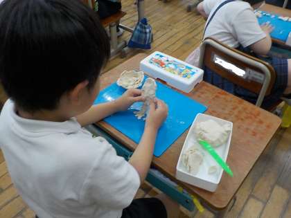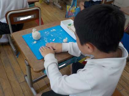 2年生は、図工で「にぎにぎねんど」という学習をしていました。