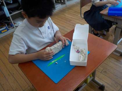 粘土のかたまりをにぎってにぎって自分の思った形にしていきました。
