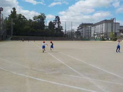 この日は、50m走でした。去年よりどれくらい速く走れるのか、試したくてうずうずしている子がたくさんいました。みんなしっかり脚や手を動かして走っていましたね!どの子も1年生の時より速いタイムが出ていました。そんなところにも成長を感じます。