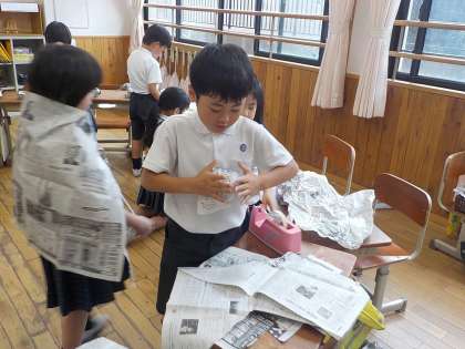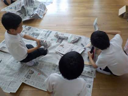 2年生は、図工で「しんぶんしとなかよし」の学習を進めていました。