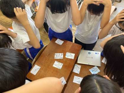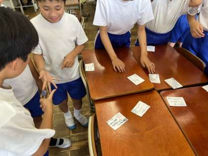 5年生では「日常を十七音で」という国語科の学習で、俳句作りをしました。日常の何気ない思いや気づきを五・七・五の形にして、表現を工夫することができました。「あじさいは きれいな色の パレットだ」「とけてきた あいすくりーむを ほうばった」など、夏らしい素敵な俳句がたくさんできました。さらに、俳句でかるたを作り、かるた大会をして楽しみました。