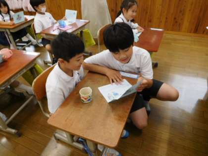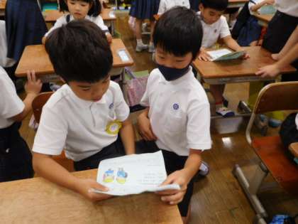 4年生から,1年生を迎える会の招待状をもらいました。丁寧に色塗りされたカードにはメッセージがぎっしり。1年生もとても喜んでいました。4年生のお兄さんお姉さんありがとうございました!