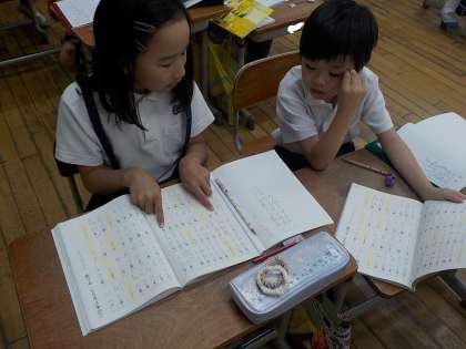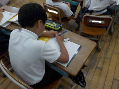 同じ部分を持つ漢字を複数使って文を作る活動をしていましたが、黙々と考えてたくさんの文を考える場面や、友達と教科書を開いて見ながら考える場面がありました。友達と一緒に学ぶことも、一人で集中してがんばることも、どちらも大切にしてほしいな、と思います。