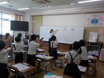 2年生は、漢字の学習も進めています。1年生の時よりも、習う漢字の形が複雑なものが多いですが、とめ・はね・はらいなどの字の形に気をつけることができるように、体全体を使って漢字を書いて形をとらえています。いろいろな方法を通して、漢字の形への気づきが深まればいいなと思います。