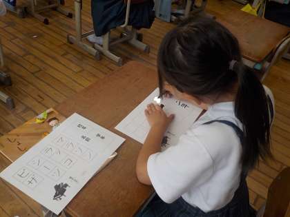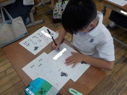 2年生は、書写の学習でフエルトペンを使ってカタカナの字を書きました。