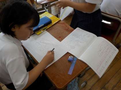 こんなものがあったらいいなというアイデアをたくさん出した後、友達に伝えたい1つを絵に描いてみました。描きながらさらに想像が膨らんで、少しずつ形になってきました。どんな機能があるかも少し書きたしたりしていました。