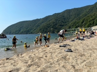 午後からの海水浴。水温も高く、ライフジャケットもあるので安心です。