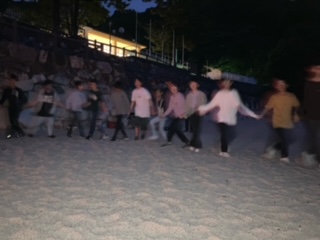 火を見ていると子どもたちの気持ちも高まります。ゲストに他の学年の先生方も来てくださり、とても盛り上がりました。
