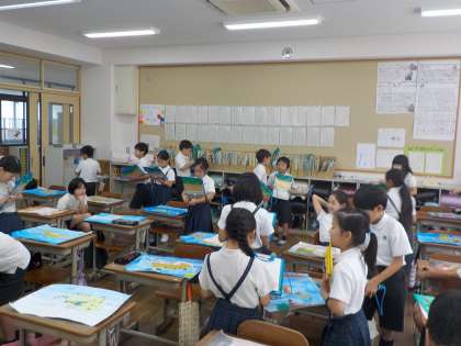 今日は、完成した作品を見て友だちと良いところを見つけあいました。