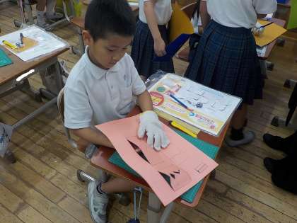 前回、どんな窓を開けるか決め、開ける予定の部分に線を引きました。今回はついにカッターナイフで窓を切り開きます。四角い窓、三角の窓、まあるい窓にぎざぎざの窓など、思い思いの窓が開いていきました。中からどんなものが見えるのでしょう。次回が今から待ち遠しいですね!