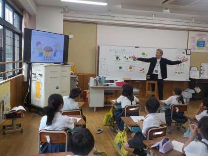 2年生は、英語活動で「サラダで元気」という学習を進めています。野菜の名前を英語で言えるように、チャンツを歌ったり、クイズに答えたりしていました。また、絵本も読み聞かせをしてもらいましたが、だんだん自分たちで言えるセリフも出てきました。お話をとても楽しんでくれているのをうれしく思います。