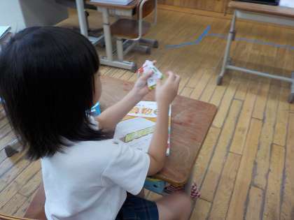 5の段、2の段、3の段、4の段と学習が進んでいますが、同時に九九カードを活用して、九九をおぼえることにも、子どもたちは一生懸命取り組んでいます。何度も繰り返しめくりながら、即座に答えが言えるようにがんばっています。宿題にも毎日出していますので、どれくらい上手になったのか、またおうちでも聞いていただければと思います。