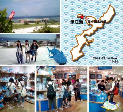 水族館の見学を終えました。「美ら海水族館オリジナル」というポップにひかれたのでしょうか,お土産を物色しているところです。