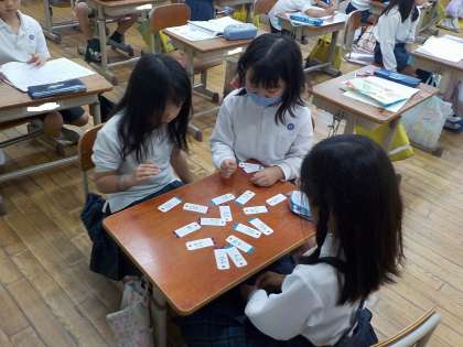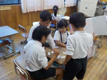 8の段の九九を学習している子どもたち。ここまで学習が進むと、他の段で出てきた九九の式をひっくり返したような式がたくさん出てきて、新しい気づきを得たようでした。2の段の時から、かける数の並びと答えとの関係に注目しながら学習してきたのですが、今回は以前のように簡単にみつからず、ああでもない、こうでもない、と悩んでいました。何人かが果敢に考えを膨らませてくれたことで、以前よりなんとも複雑な「規則」が見つかりました。もっと他にもありそうだなぁ、なんて言ったりしていましたから、ぜひ自主学習で学びをさらにふくらませてくれたらなぁと思います。