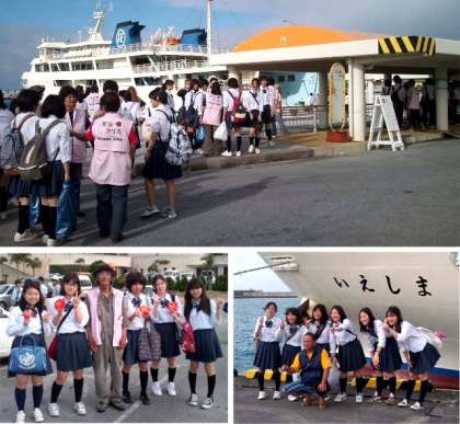 伊江島では,「さようなら」ではなく「いってらしゃい」と送りだしてくださるそうです。また伊江島へ帰っておいでということでしょう。その言葉に涙する生徒の姿も。人のつながりの温かさを感じ,すなおに感謝の気持ちを表現する,そんな人であってほしいと思います。
