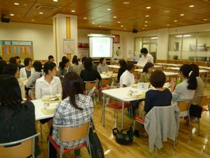 1年生の保護者の方を対象に、給食試食会を行いました。はじめに、小山栄養教諭から学校給食のめあてや変遷、給食ができるまでの流れや、献立を考える条件などについての講話がありました。みなさん、熱心に耳を傾けられていました。