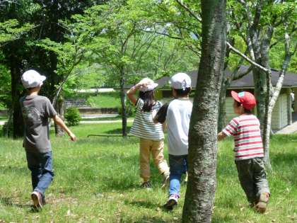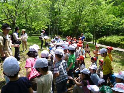 1,2年生は合同で宝ケ池憩いの杜へ。今回の遠足は1年生と2年生のまざったグループで活動をしました。