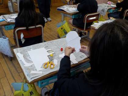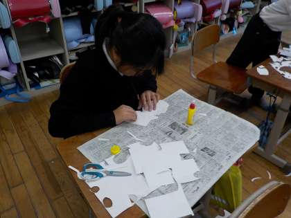 顔のパーツができてきて、体のパーツも作り始めています。どんな向きにつけて、体が動いている感じを出そうか、自分が作ったパーツを試行錯誤しながら並べている子がいて、素敵だなと思いました。