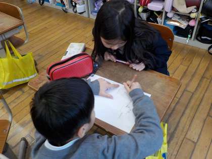 3学期に入って、係活動のグループを決めなおすことにしました。クラスのみんなが喜ぶような、みんなが楽しくなるような活動はどんなものかいろいろ考えていくと、2学期とは係活動の内容も少し変わってきました。新しいチームで、和気あいあいと、どんなことをして楽しめるようにするのか話し合っていました。早速、新たに結成された「学しゅうがかり」が、みんなに解いてもらおうと算数プリントをせっせと作っていました。新しいことも、どんどん『やってみよう!』と思えるところが、とてもすてきだなと思います!