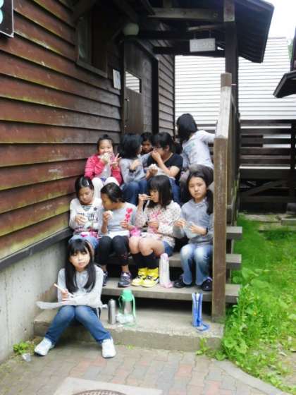 この後全員写真を撮り、火おこし体験に入ります。本日はゆったりとしたプログラムで、火おこし体験のあとは夕食の準備、夕食、入浴、天体観測、そして就寝という予定です。この後のホームページのアップは、17時〜18時頃を予定しています。