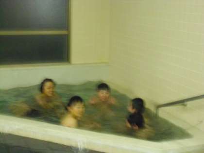 本日最後の写真は入浴のシーンです。男子は元気が良すぎ! みんなで浴槽に入り、水のかけあい。少しハメをはずし過ぎたのでは? 何回も注意されていました。