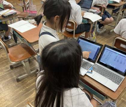 授業の最後には、自分の考えた式や図を友達にタブレットで見せながら、伝え合う活動をしました。人に説明することで、どんどん理解を深めていってほしいです。