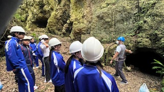 クラシンウジョウ壕に入り、ガイドさんのお話を聞きました。