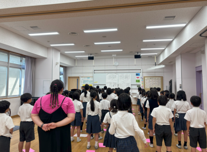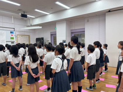 1年生を迎える会で、3年生からは「ともだちになろうよ」という曲に合わせて、歌とダンスをプレゼントします。「明日も明日もまた ずっとともだち」という歌詞を歌いながら、自然と笑顔がこぼれている三年生達。