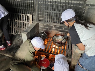 火がつきました。鍋で具材を煮込んでいます。