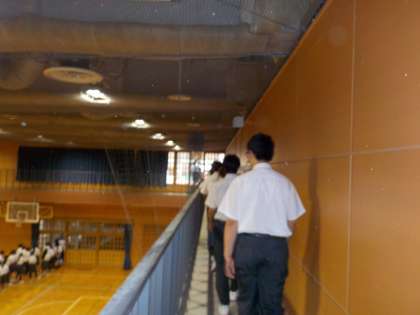全校、アリーナからの避難で、普段は通らないところが避難経路でした。