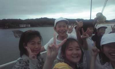 気になる志摩地方のお天気ですが,雨はあがり曇り空で少し肌寒いようです。英虞湾を優雅に航行する船内の様子です。もうすぐなかよし港(みさきの家)に着くようです。