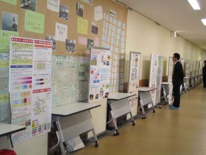 授業参観の後は、分科会が行われました。本当に、一日びっしりとスケジュールがあり、みなさん熱心に研修されています。廊下には、全国の小中一貫教育をいかにすすめていくか、また進めていかれているのかを示したパネル展示もあります。
