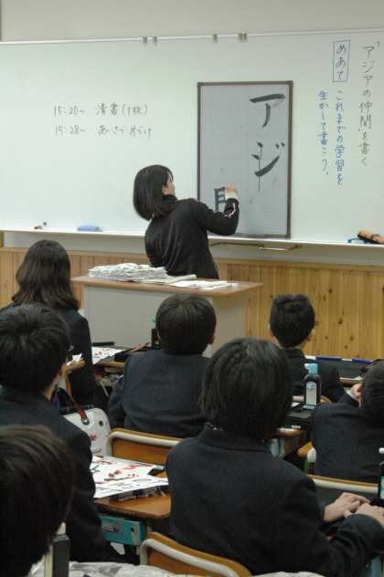 6年では中学校の先生に毛筆を習っています。字が上手いと将来得するよ。