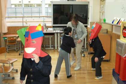 小学部5組では鬼のお面をかぶって音楽に合わせてダンス。みんな体を使って楽しく踊れました。