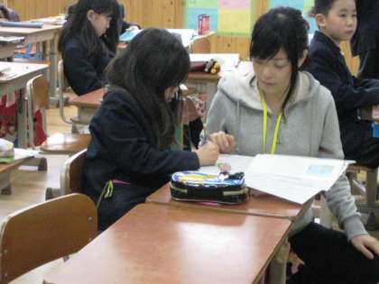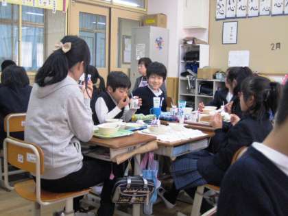 子どもたちと年齢が近いこともあり,子どもたちがまとわりついたり,自己紹介したり,質問をしたり,給食を食べたり,もちろん勉強を教えてもらったりしています。