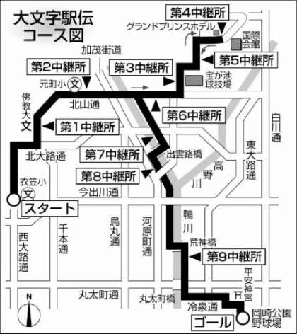 2月10日の京都市小学校「大文字駅伝」大会は、衣笠小学校を10時45分に号砲。各支部代表の小学校等49チームが一斉にスタートします。コース図をご覧ください。