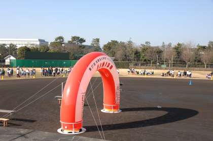 2月10日、快晴に恵まれ第27回京都市小学生「大文字駅伝」大会が行われました。開会式の会場は、今年度はみやこメッセ。朝、8時過ぎから各支部代表の選手たちが続々と集まってきました。