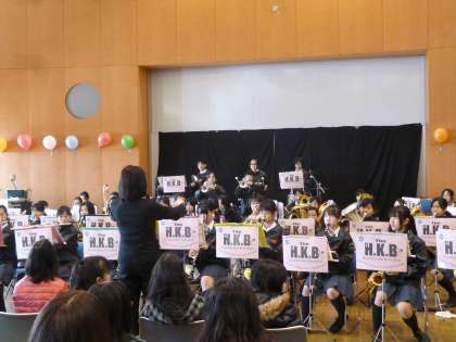 吹奏楽部は、今年度も地域の多くの行事にお招きいただき、日頃の練習の成果を披露することができました。どんどん腕をあげていて、来年度の吹奏楽コンクールは金賞を狙えるまでになりました。HKBこれからも、がんばります!