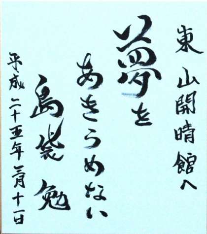 色紙に「夢をあきらめない」という言葉を残して、島袋さんは沖縄への帰途につかれました。本当に素敵なご講演、ありがとうございました。またのご来校をお待ちしています。