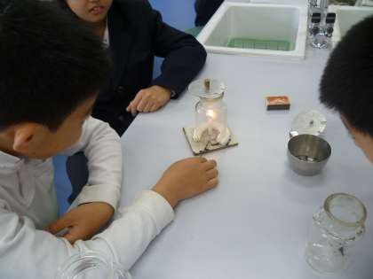 「ろうそくをびんの中に入れて,燃え続けさせるためにはどのようにすればよいか」ということを学級で話し合い,実験方法を決めました。