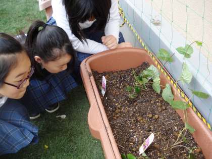 生徒会の環境委員会に続いて、児童会の園芸委員会でも、北校舎南側に