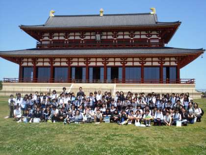 快晴にめぐまれ、子どもたちは奈良の歴史にふれ、友だちとお弁当を食べ、