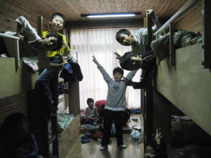 みんな6時には起きて毛布やシーツをたたむ作業にかかりました。