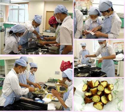 今回は簡単に調理ができるように「サーターアンダギ—ミックス」という粉を使いました。材料は,教師で用意しましたが,その後は5組の生徒達の自主性に任せて学習を進めていきました。