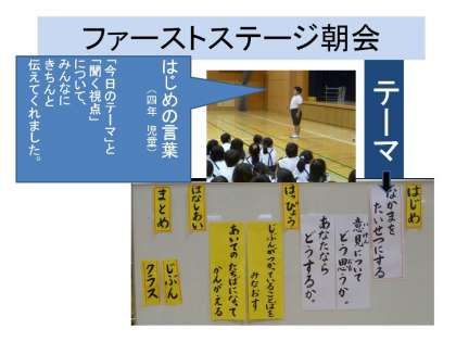 ファーストステージのステージ朝会を行いました。
