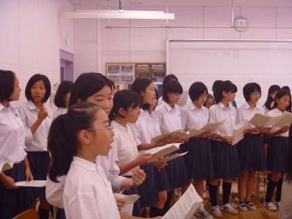 6年生の曲は,8年生が今までのコンクールで歌った曲、「確かこんな風に教えてもらった」「思い出した、この歌い方は」ときちんとアドバイスをしてくれたので,最後には6年生,歌声が変わりました。8年生もなんだか嬉しそうです。